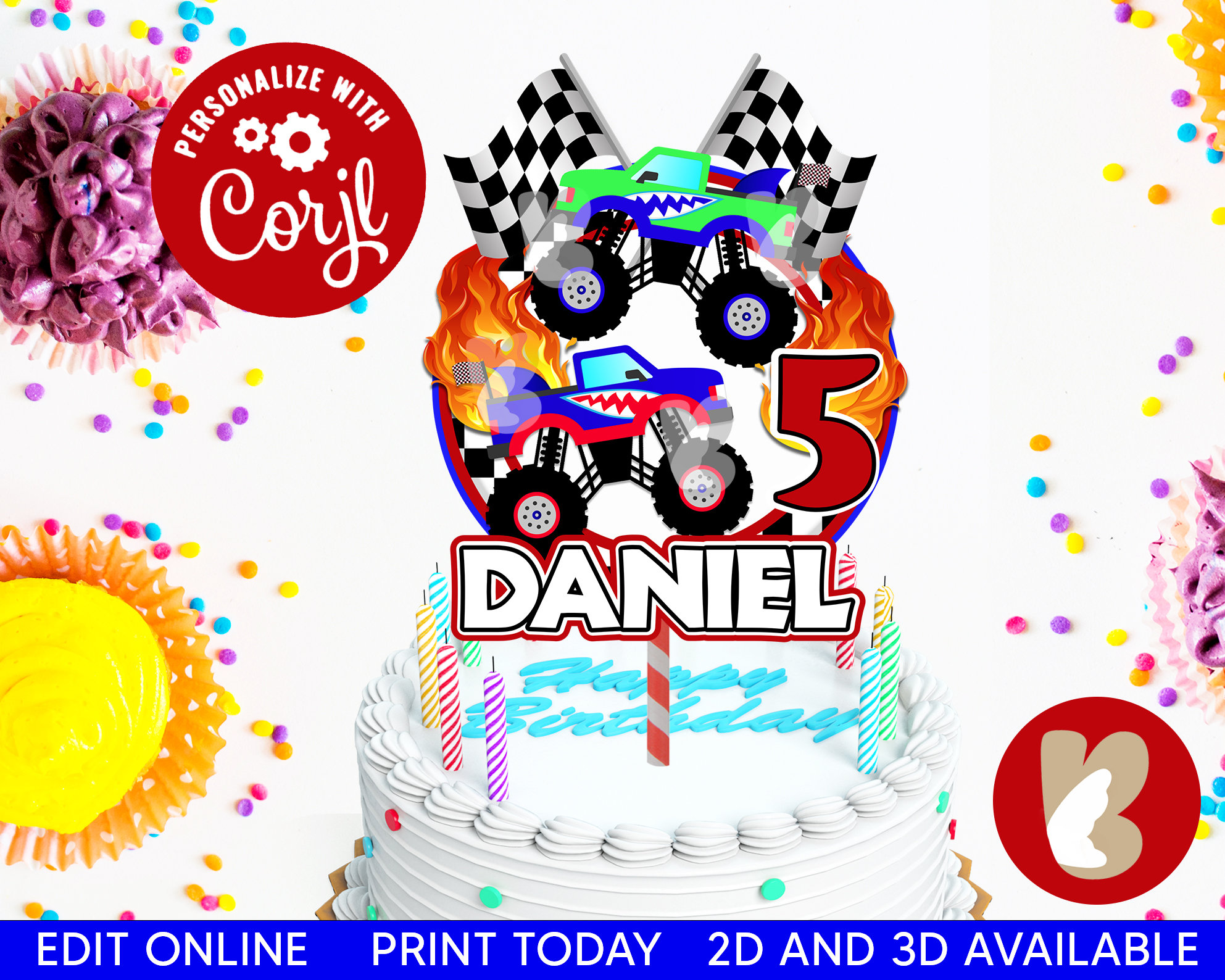 Monster Truck Cake Topper Kuchendekoration Geburtstag Decoset Bastelbedarf Etsy De